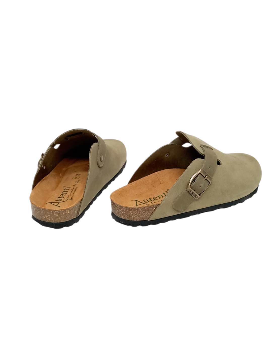Zueco bio fabricado en piel sprinter de primera calidad color verde oliva, utilizando siempre los mejores materiales nacionales y medios totalmente tradicionales, con diseño de hebilla ajustable para adaptarlo mejor.